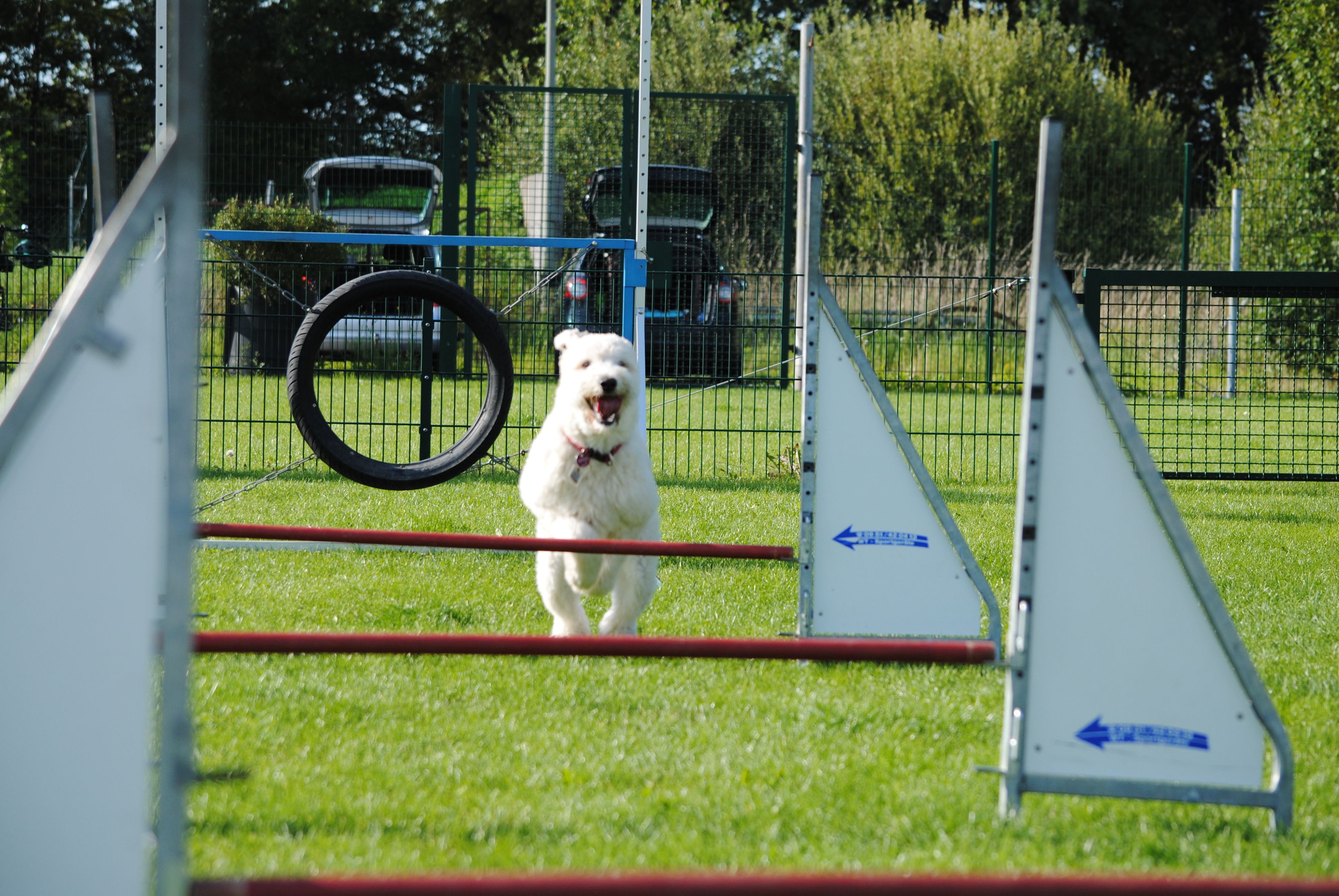 Außerdem dürfen sich die Fellnasen nach der Konzentration im kleinen Agility Parcour austoben.